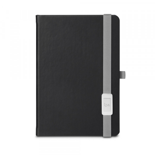 Notizbuch mit Gummiband mit Metallschlussbutton, Innenfach, Kalender und Schlaufe für Schreibgerät. Bedruckbar direkt auf den Umschlag. 192 linierte Seiten, DIN A5. 140 x 205 mm