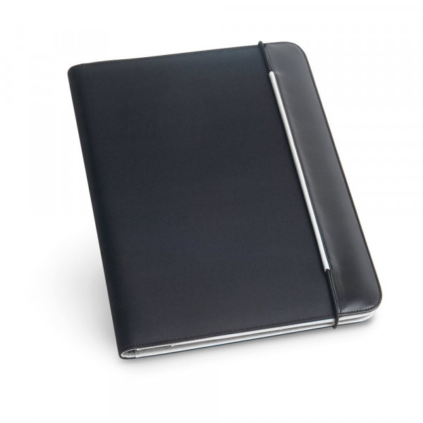 Schreibmappe A4 aus Lederimitation und 800D mit Gummiband, Dokumentenfach, Innenseite mit 3 Fächern aus Mikrofaser und einem Notizblock mit 20 linierten Blättern. Kugelschreiber nicht enthalten. 245 x 315 x 15 mm