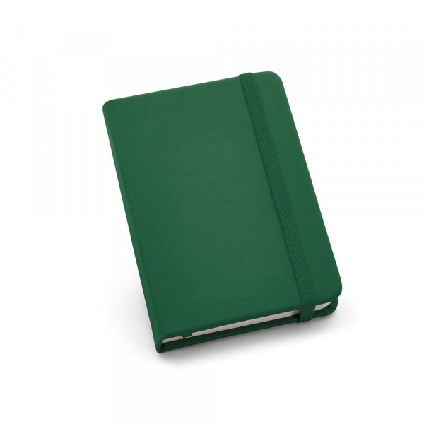 Notizbuch im Taschenformat mit Hardcover aus Lederimitation. Dieses Notizbuch hat 160 unlinierte Seiten, ein Trennband und ein Gummiband. 90 x 140 mm