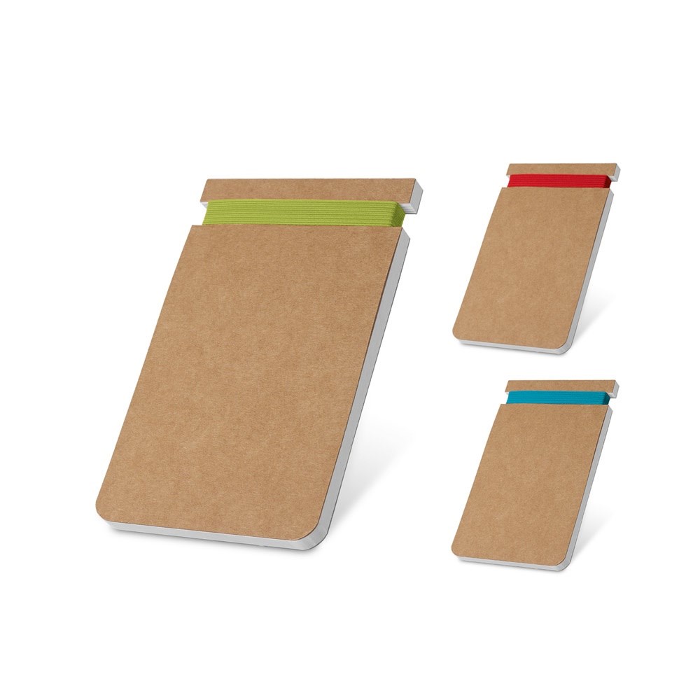 Notizblock B7 mit Hardcover aus Karton und 120 unlinierten Seiten aus recyceltem Papier. 85 x 125 mm