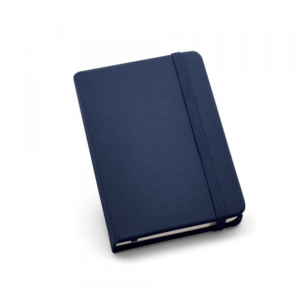 Notizbuch im Taschenformat mit Hardcover aus Lederimitation. Dieses Notizbuch hat 160 linierte Seiten, ein Trennband und ein Gummiband. 90 x 140 mm