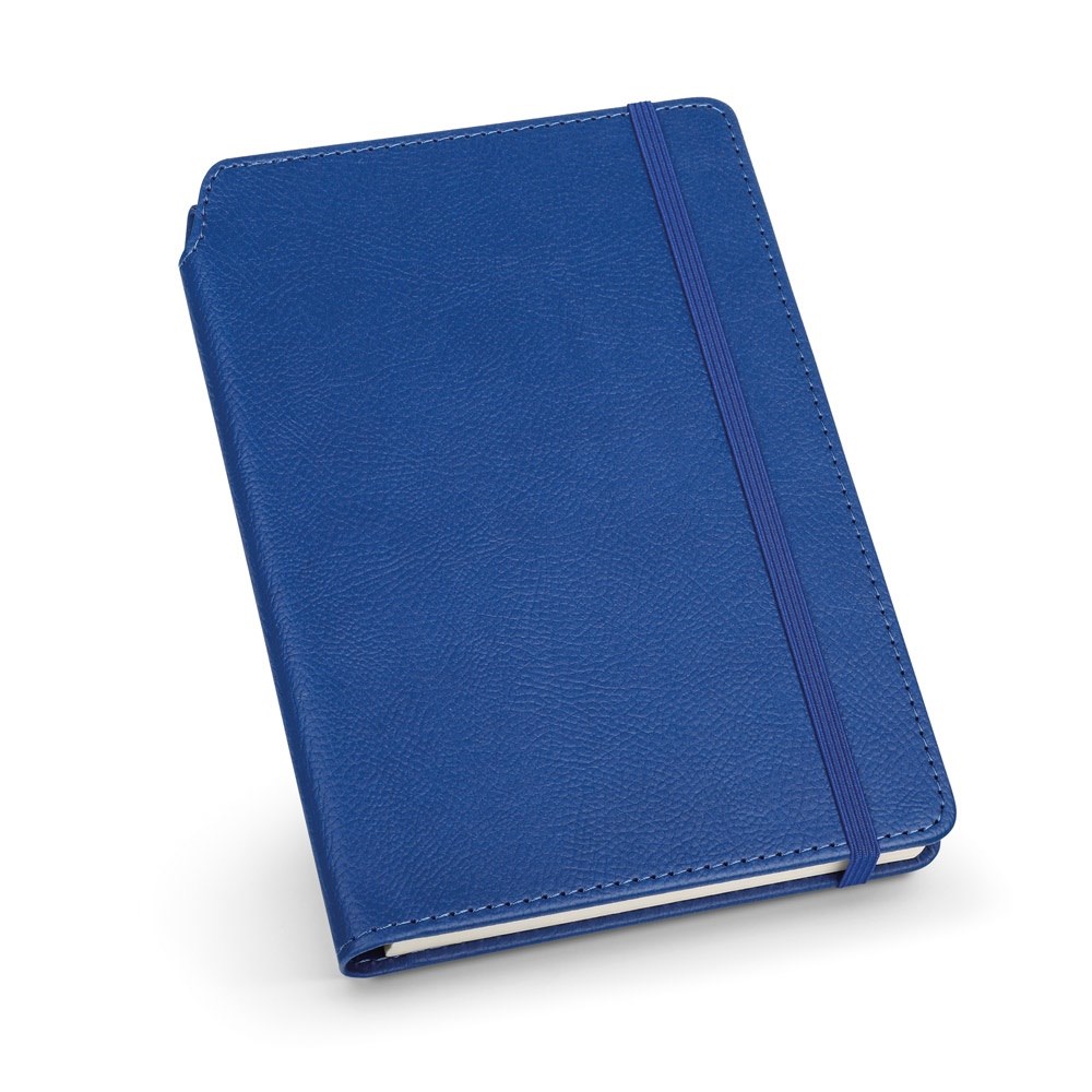 Notizbuch A5 mit Hardcover aus Lederimitation. 192 linierten Seiten, einem Kugelschreiberhalter (Kugelschreiber nicht enthalten) und einem Gummiband. 140 x 210 mm