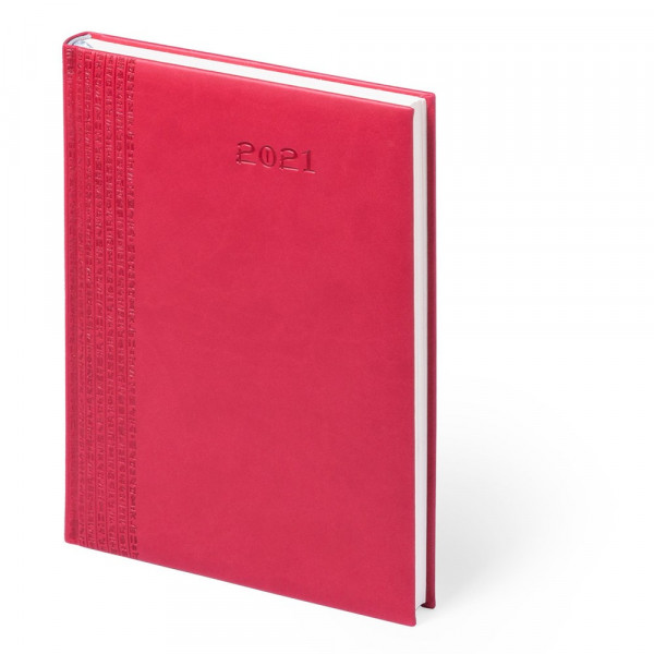Agenda in Größe B5 aus widerstandsfähigem und weichem zweifarbigem PU-Leder mit gepolsterten Bezügen und in verschiedenen Farben. Tagesseitengestaltung mit Tagessatz und Stofflesezeichen. In Spanisch, Galicisch, Baskisch und Katalanisch.