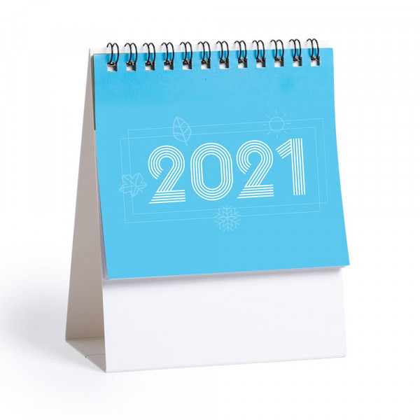 Ring-Tischkalender, dreieckig aus Karton. Entwurfsmonat im Verlauf/vorheriger Monat/nächster Monat und Kalender der Heiligentage. Große Druckfläche auf beiden Seiten.