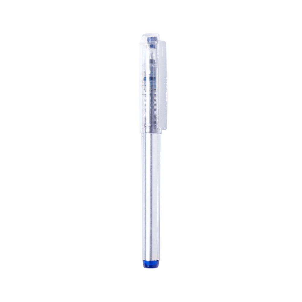 Tintenroller von STYB mit transparenter Kappe und originellem, zweifarbigem Design sowie silbernem Schaft und Kontrastdetails in verschiedenen lebhaften Farben. Mit blauer Tinte.