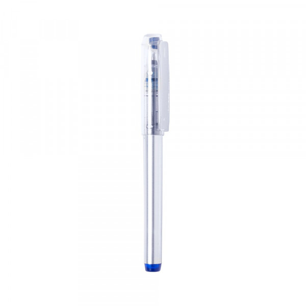 Tintenroller von STYB mit transparenter Kappe und originellem, zweifarbigem Design sowie silbernem Schaft und Kontrastdetails in verschiedenen lebhaften Farben. Mit blauer Tinte.
