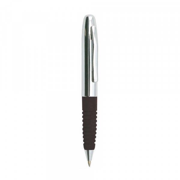 Origineller Metall-Kugelschreiber mit elegantem, zweifarbigem Design. Griff aus angenehm weichem EVA-Kunststoff in verschiedenen Farben. Ringe und Spitze in Silber. Blaue Tinte.