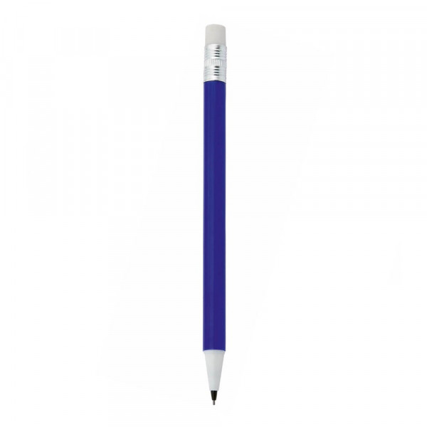 Magischer Druck-Bleistift mit zweifarbigem Gehäuse in lebhaften glänzenden Farben und Kontrastdetails in Weiß und Silber. 0,7 mm Bleistiftminen und Radiergummi inklusive.