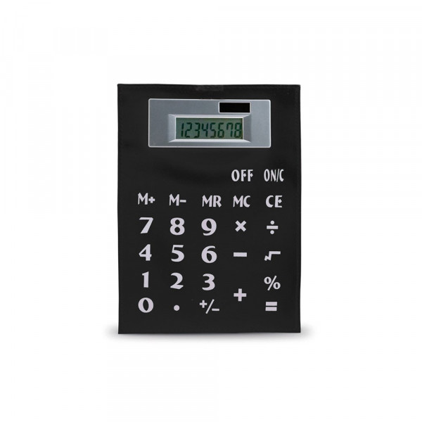 Origineller 8-stelliger, solarbetriebener Taschenrechner. Mit flexiblem PVC-Körper in lebendigen Farben. Knopfzellen mit Schutzfolie inklusive. Präsentiert in einem originellen transparenten Etui.