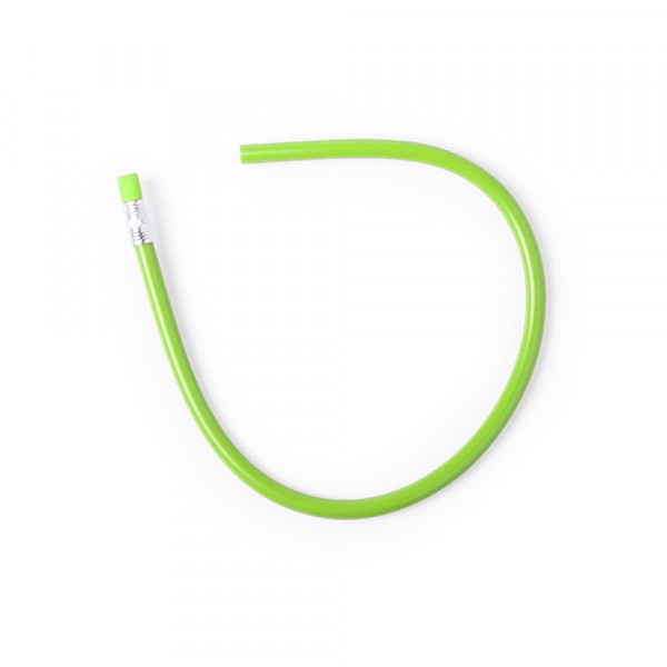 Extra langer flexibler Bleistift mit weichem PVC-Körper in verschiedenen lebendigen Farben, und farblich passendem Radiergummi dabei.