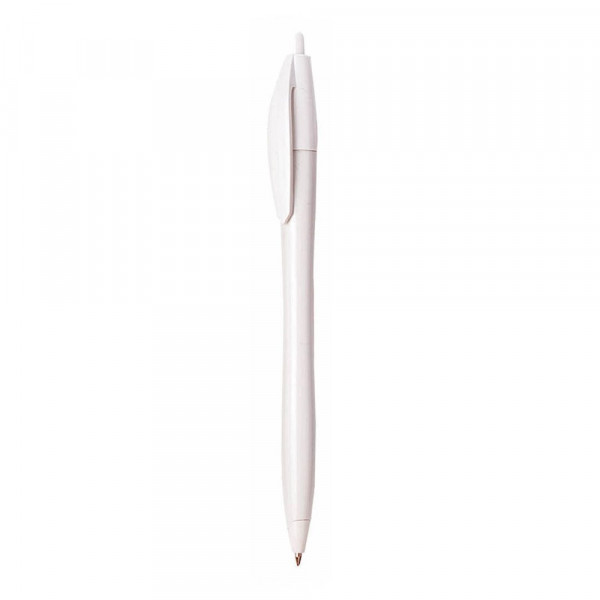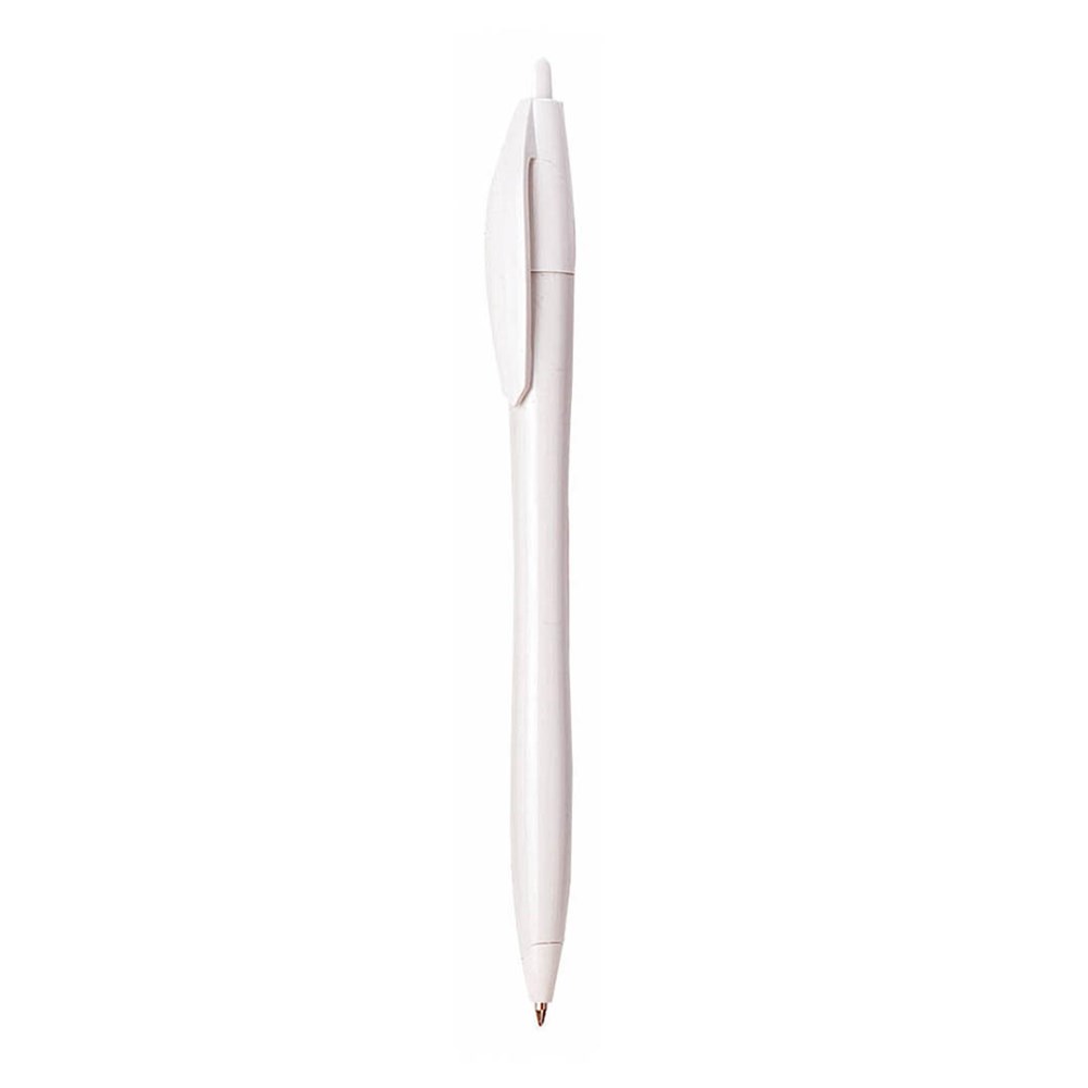 Druck-Kugelschreiber mit zweifarbigem Design und geschwungenem Körper in fröhlichen kräftigen Farben. Mit farblich passendem Clip und blauer Tinte.