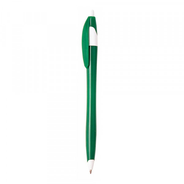 Druck-Kugelschreiber mit zweifarbigem Design und geschwungenem Körper in fröhlichen kräftigen Farben. Mit farblich passendem Clip und blauer Tinte.