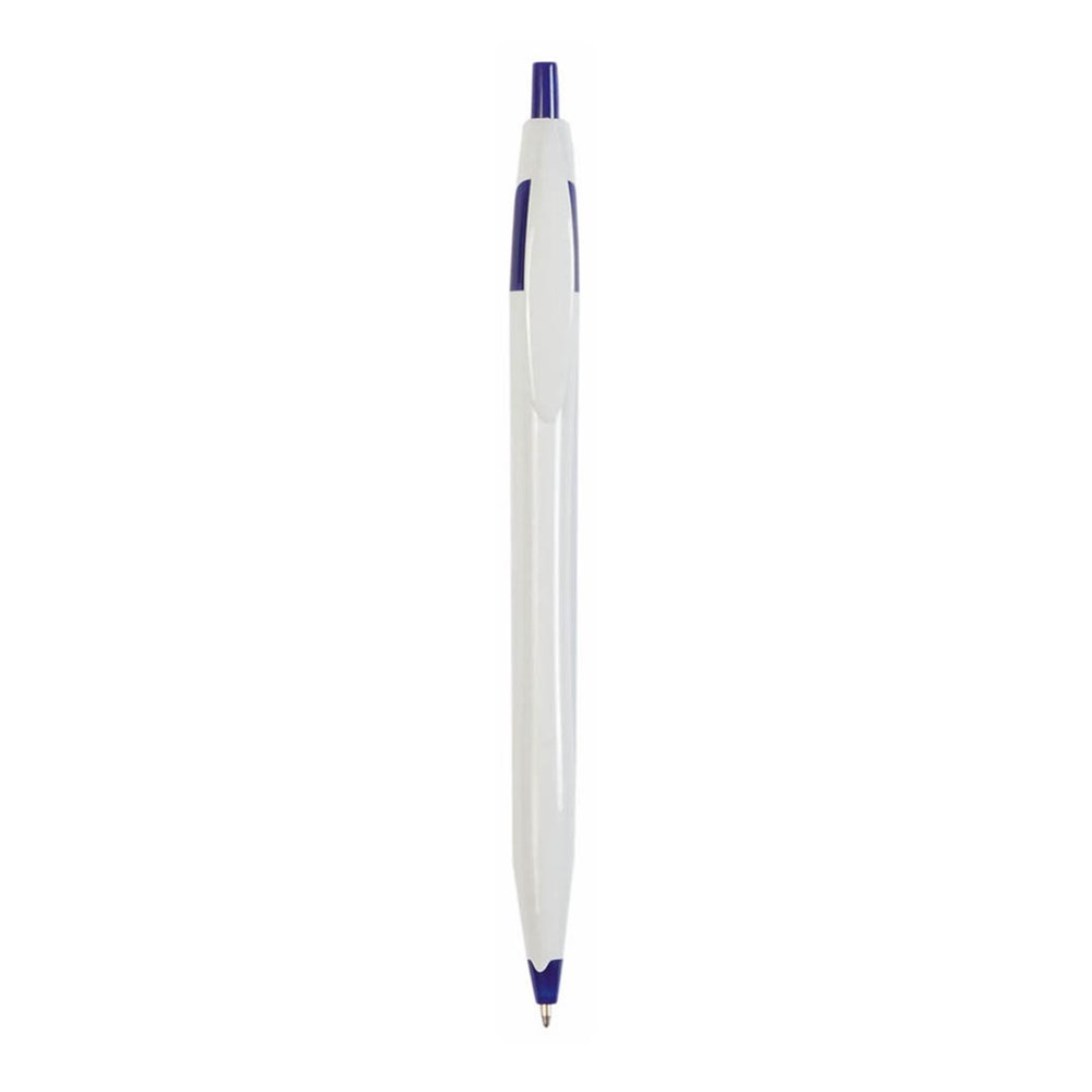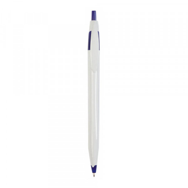 Druck-Kugelschreiber mit zweifarbigem Design und geschwungenem Körper in fröhlichen kräftigen Farben. Mit farblich passendem Clip und blauer Tinte.