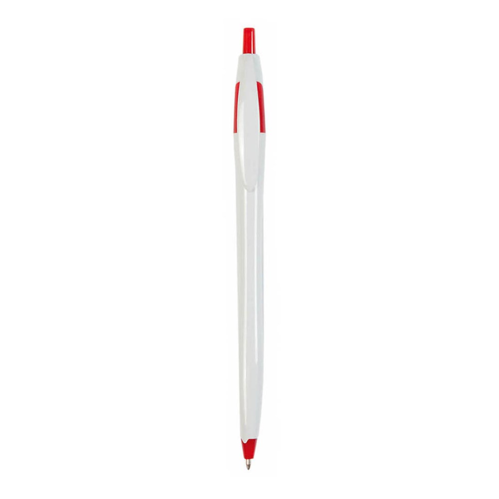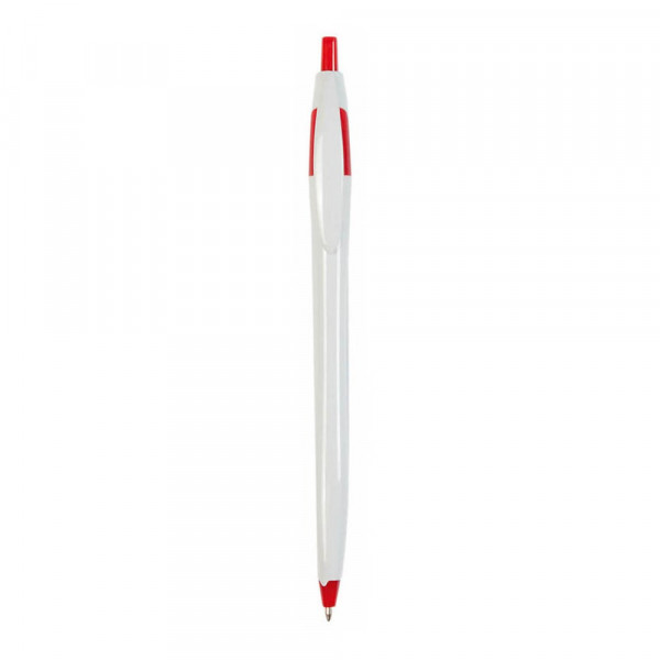 Druck-Kugelschreiber mit zweifarbigem Design und geschwungenem Körper in fröhlichen kräftigen Farben. Mit farblich passendem Clip und blauer Tinte.