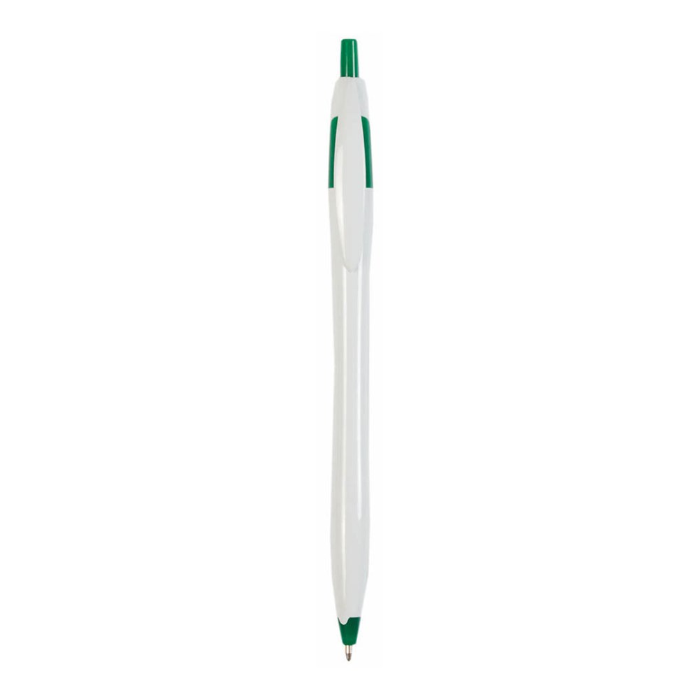 Druck-Kugelschreiber mit zweifarbigem Design und geschwungenem Körper in fröhlichen kräftigen Farben. Mit farblich passendem Clip und blauer Tinte.