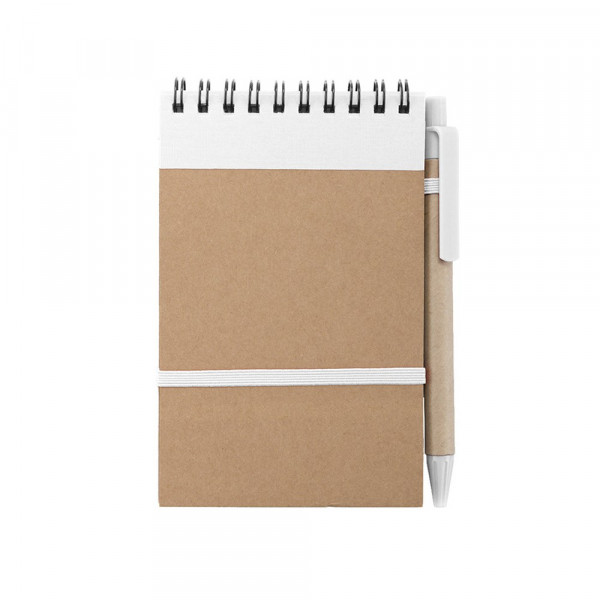 Ring-Notizbuch mit Soft-Touch-Cover aus robustem Recyclingkarton. Mit Gummiband sowie farblich passendem Kugelschreiber aus recyceltem Karton. Mit 70 linierten Blättern mit ökologischem Layout und Kugelschreiberhalter auf der Rückseite.