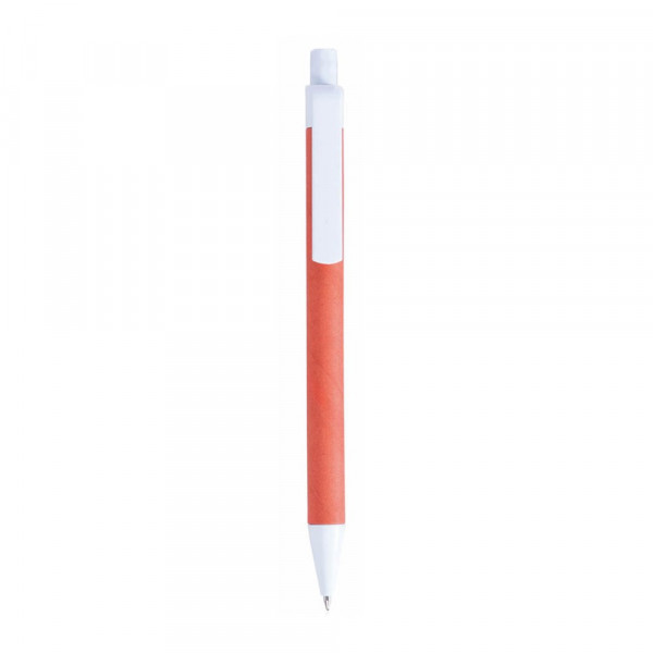 Druck-Kugelschreiber in origineller Kombination aus recyceltem Karton in kräftigen Farben und Kontrastdetails in Weiß. Blaue Tinte.