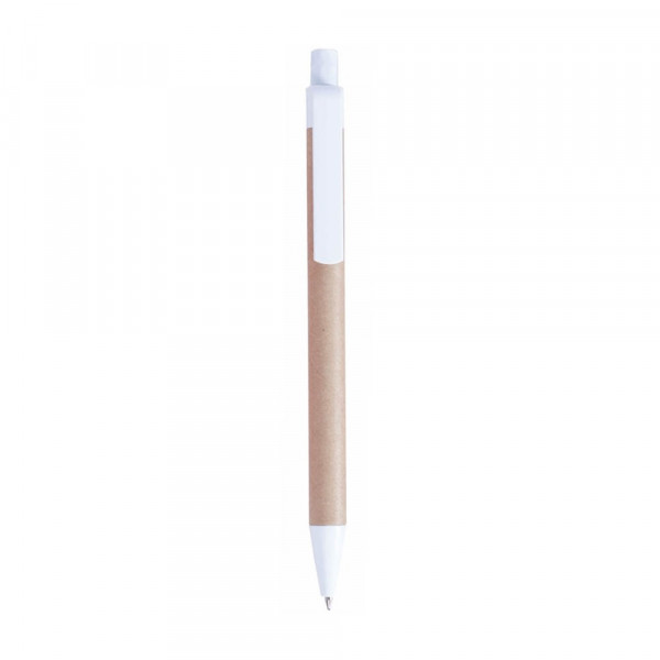 Druck-Kugelschreiber in origineller Kombination aus recyceltem Karton in kräftigen Farben und Kontrastdetails in Weiß. Blaue Tinte.