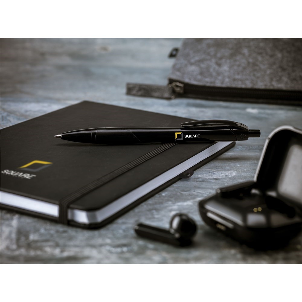 Blauschreibender Kugelschreiber, nahezu vollständig aus recycelten PET-Flaschen hergestellt. Nachhaltig, umweltfreundlich und ökologisch verantwortungsvoll.