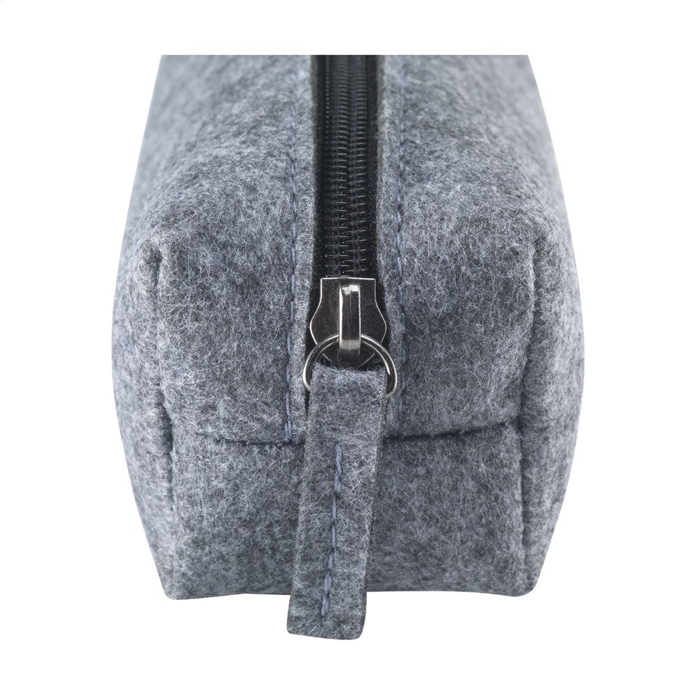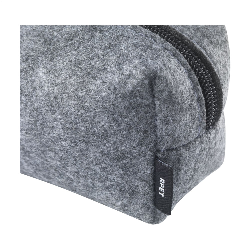 Großzügiges Federmäppchen aus robustem RPET-Filz (hergestellt aus recycelten PET-Flaschen). Mit Reißverschluss.