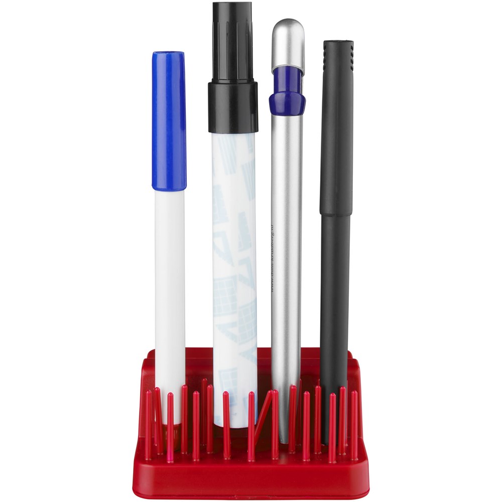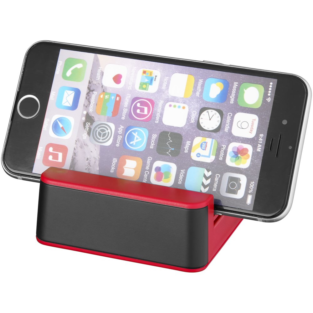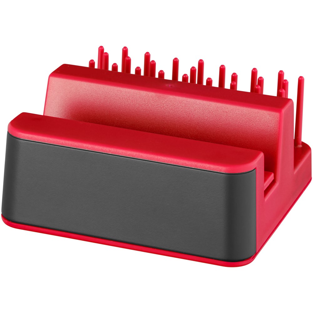 Der leuchtende Schreibtischständer Glint ist ein Multifunktionsständer, der als Ständer für Smartphones und Tablets aber auch zum Aufbewahren von Stiften verwendet werden kann. Gravieren Sie Ihr Logo auf der Vorderseite ein und er leuchtet, wenn Sie ein Gerät darauf stellen.