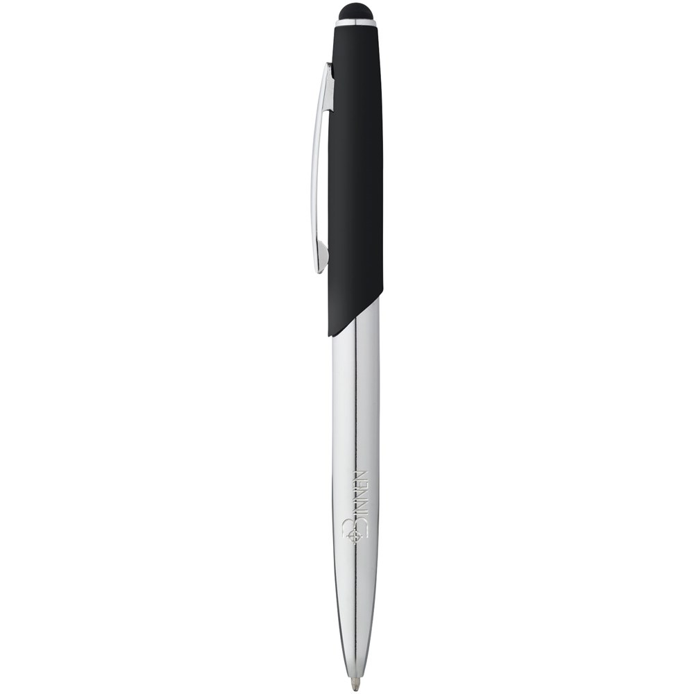 Stylus Kugelschreiber mit eleganter Silhouette, der über einen matten oberen Schaft mit glänzendem unteren Schaft aus Chrom und passenden Chromakzenten verfügt. Mit Samtbeutel in einem Avenue Geschenkbox (Größe: 16 x 2,5 x 1,5 cm).