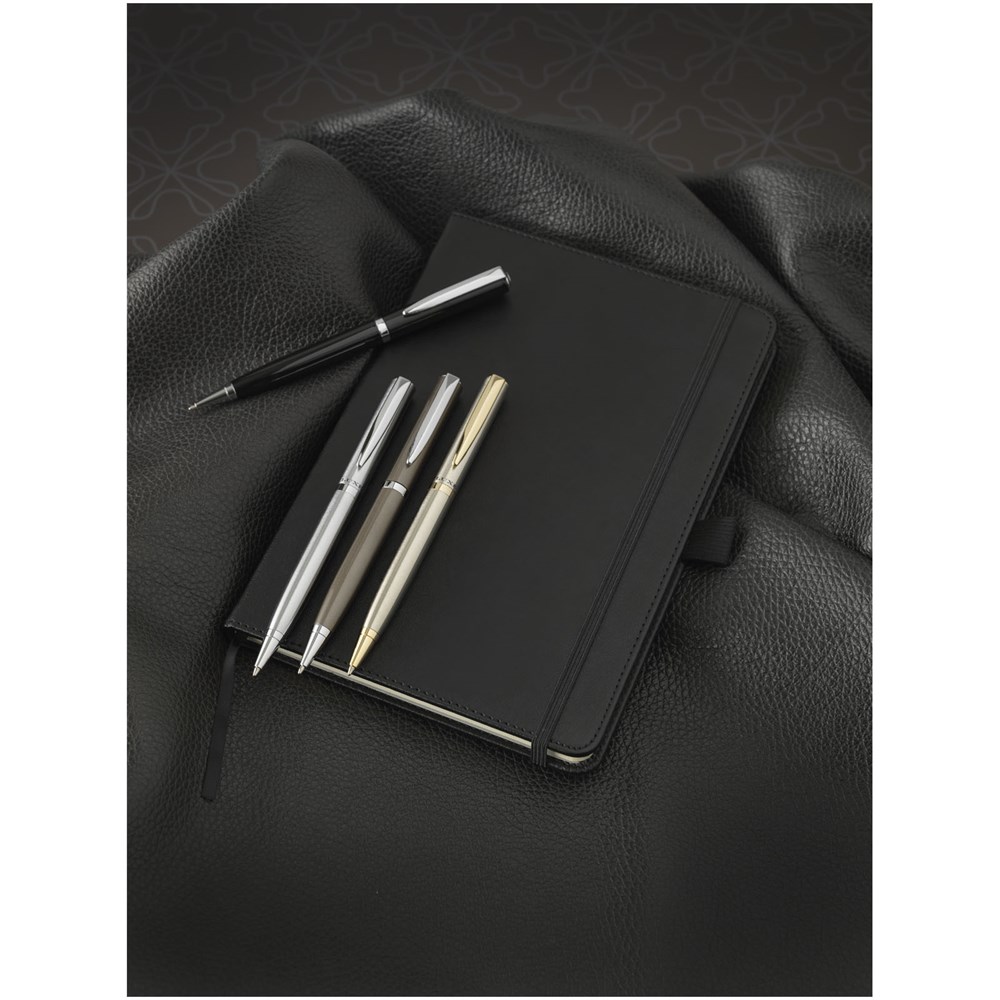 Der lackierte Kugelschreiber kommt mit einem exklusiven Design und mit silberfarbenen Details. Inklusive einer hochwertigen schwarzen Ersatzmine und verpackt in einer „LUXE“-Geschenkschachtel (16 x 4,5 x 2,8 cm).