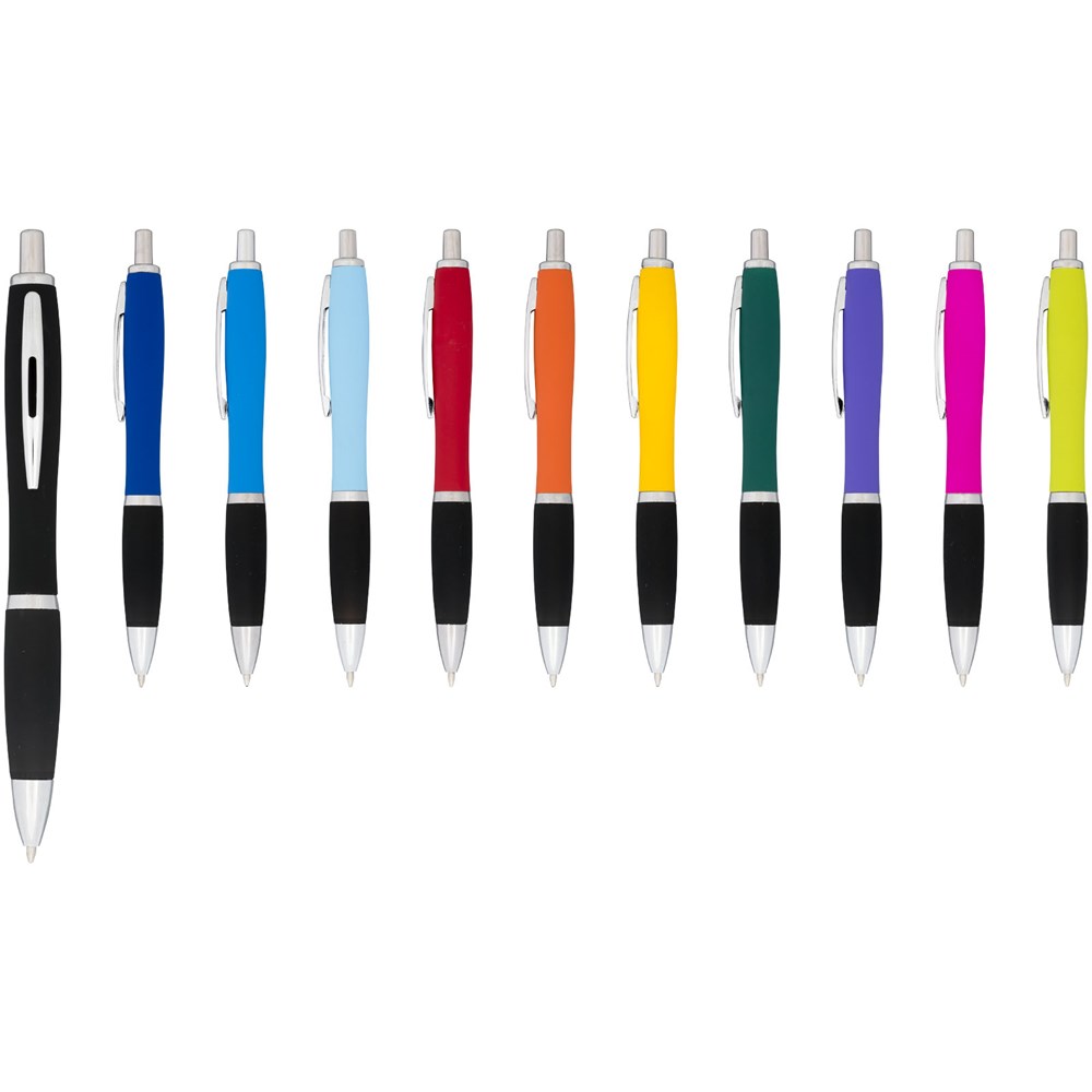 Nash Kugelschreiber mit Klickmechanismus mit farbigem Schaft mit einer weichen Oberfläche in einer Menge kräftiger Farben. Mit schwarzer Mine geliefert.