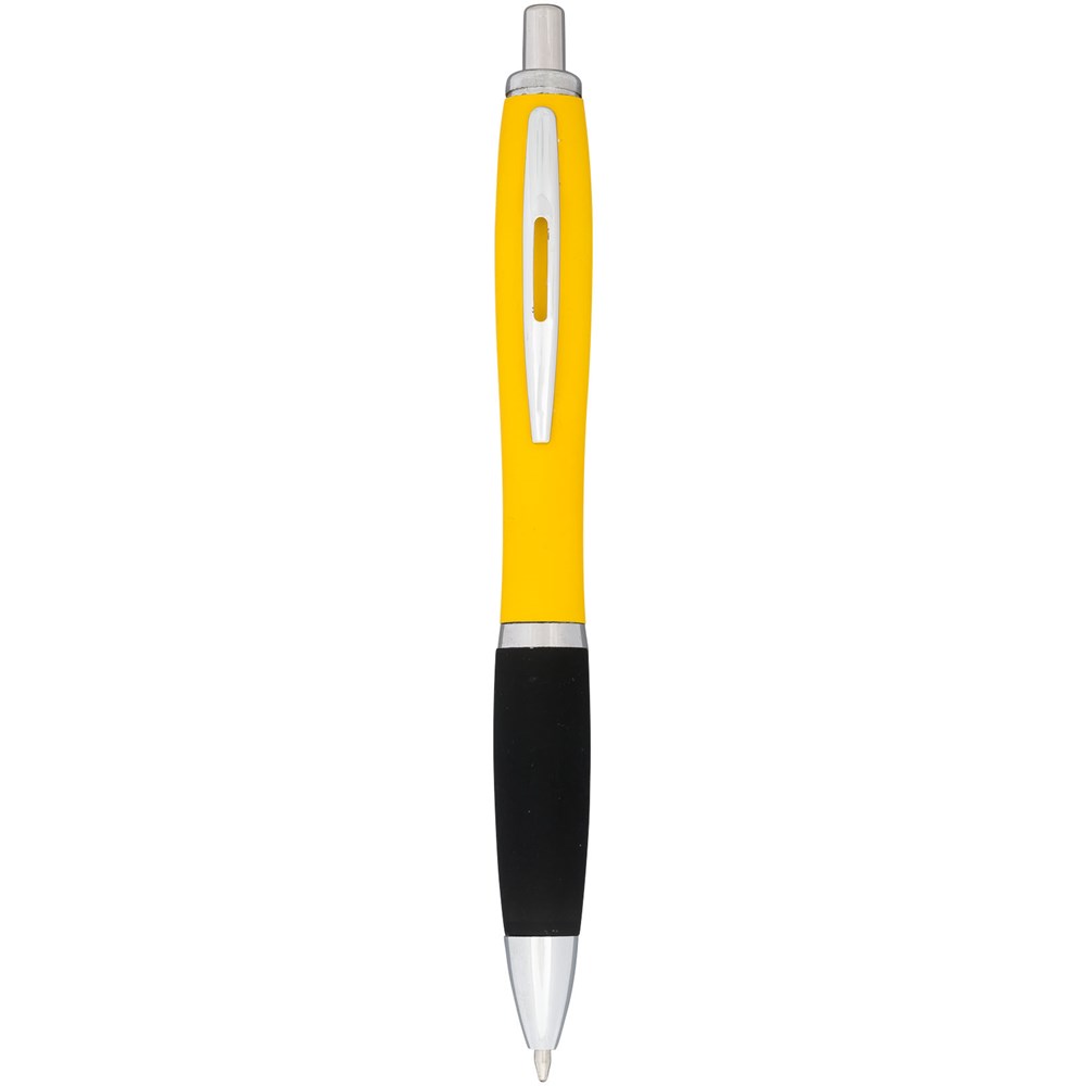 Nash Kugelschreiber mit Klickmechanismus mit farbigem Schaft mit einer weichen Oberfläche in einer Menge kräftiger Farben. Mit schwarzer Mine geliefert.