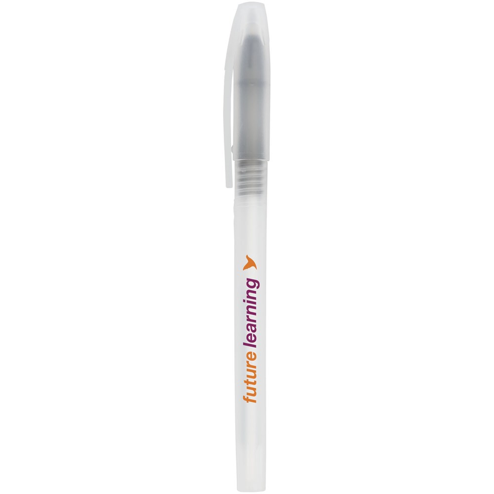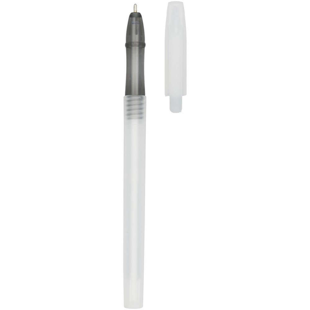 Transparenter Kugelschreiber mit abnehmbarer Kappe und farbigem Akzent.