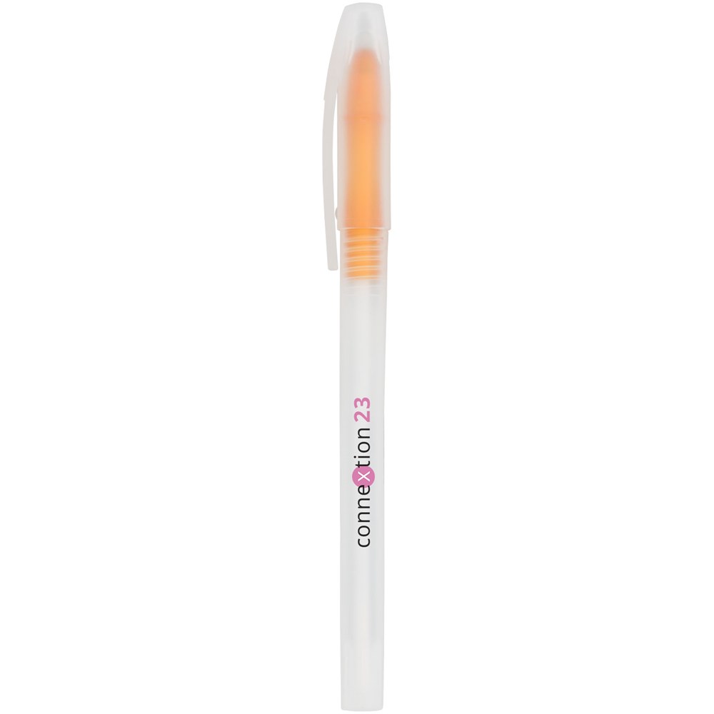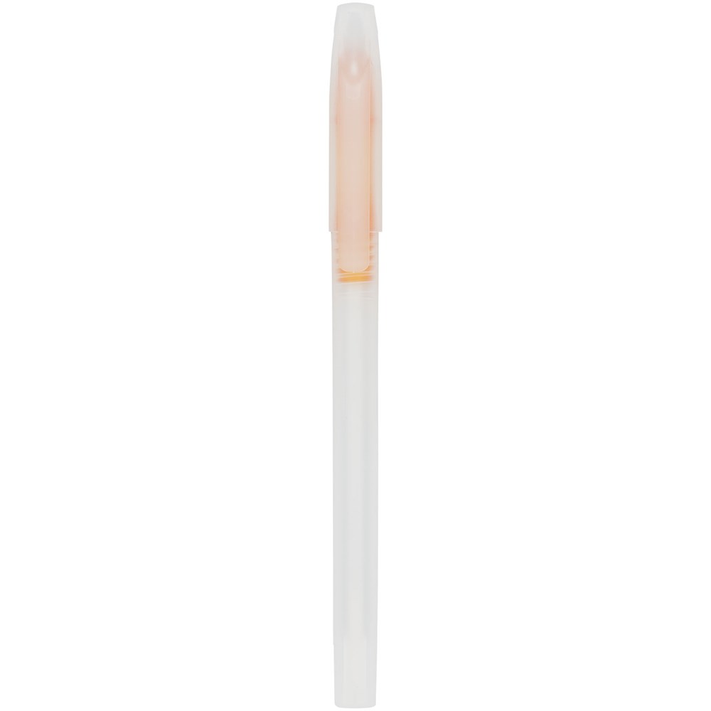 Transparenter Kugelschreiber mit abnehmbarer Kappe und farbigem Akzent.