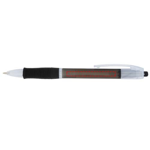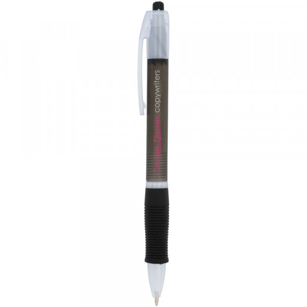 Farbiger Kugelschreiber mit Klickmechanismus mit transparentem Schaft und gummiertem Griff in passender Farbe.