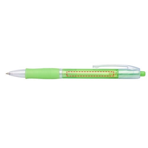 Farbiger Kugelschreiber mit Klickmechanismus mit transparentem Schaft und gummiertem Griff in passender Farbe.