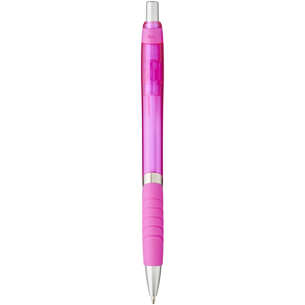 Kugelschreiber mit Klickmechanismus in beliebtem Stil, mit hellem, transparentem Schaft inkl. passendem Farbclip und gummiertem Griff. In einer großen Auswahl attraktiver Farben erhältlich.