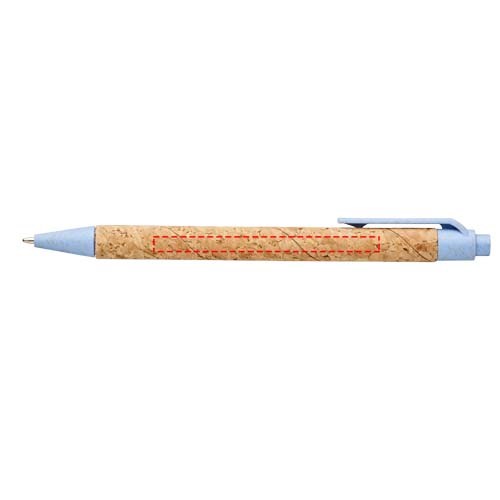 Umweltfreundlicher Kugelschreiber mit Klickmechanismus, Korkgriff und Weizenstrohverzierungen in verschiedenen Farben. Bei Weizenstroh handelt es sich um zurückgebliebene Stiele nach der Ernte von Weizenkörnern. Dadurch wird die Menge an Kunststoff reduziert und eine umweltfreundliche Alternative geschaffen. Die Farbe des Korkmaterials kann variieren.