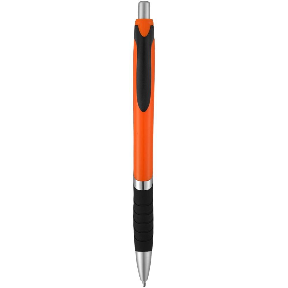 Kugelschreiber in beliebtem Stil, mit Klickmechanismus und einfarbigem Schaft, schwarzem, gummiertem Griff und zusätzlichen silbernen Zierakzenten. In einer großen Auswahl attraktiver Farben erhältlich.