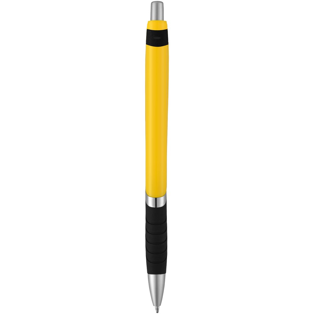 Kugelschreiber in beliebtem Stil, mit Klickmechanismus und einfarbigem Schaft, schwarzem, gummiertem Griff und zusätzlichen silbernen Zierakzenten. In einer großen Auswahl attraktiver Farben erhältlich.