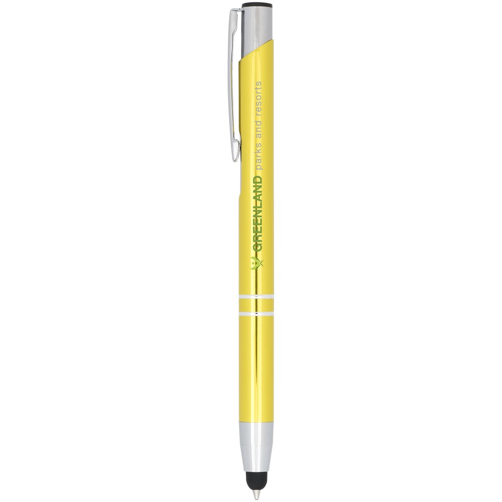 Der metallisch eloxierte Kugelschreiber verfügt über einen integrierten Eingabestift an der Stiftspitze. Der Stift ist in einer Vielzahl von Farben erhältlich und hat eine eloxierte Oberfläche, die ihm einen markanten Glanz verleiht. Das umfangreiche und beliebte Moneta-Sortiment ist in vielen verschiedenen Stilen und Ausführungen erhältlich.