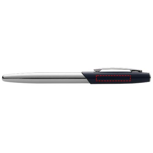 Tintenroller mit eleganter Silhouette, der über einen matten oberen Schaft mit glänzendem unteren Schaft aus Chrom und passenden Chromakzenten verfügt. Mit Samtbeutel und Avenue Geschenkbox (Größe: 16 x 2,5 x 1,5 cm).