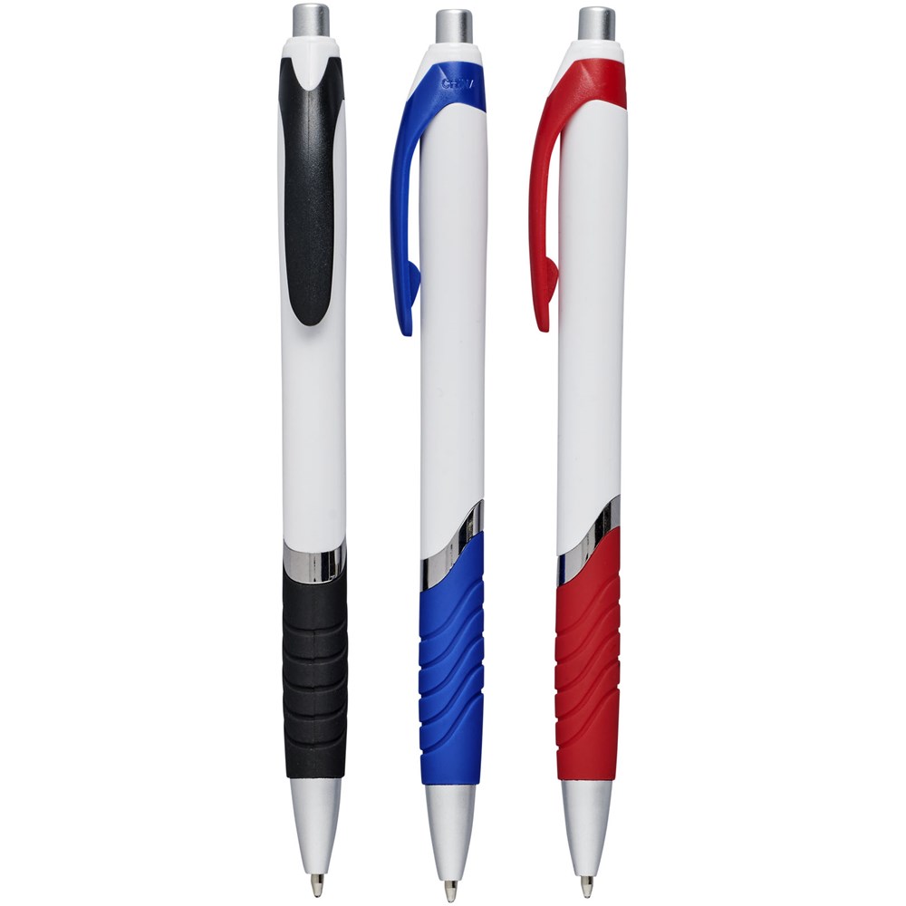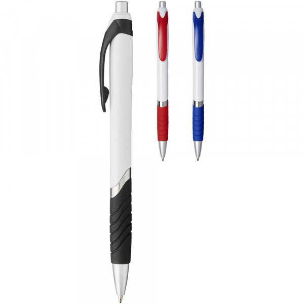 Druck-Kugelschreiber mit Gummigriff.