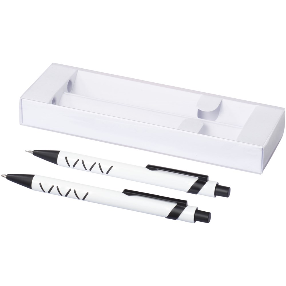 Kugelschreiber und mechanischer Bleistift mit Klickmechanismus in einer passenden Papier Geschenkbox.