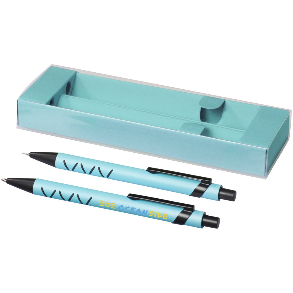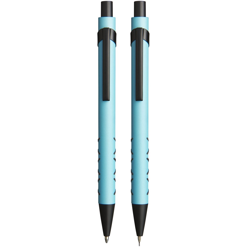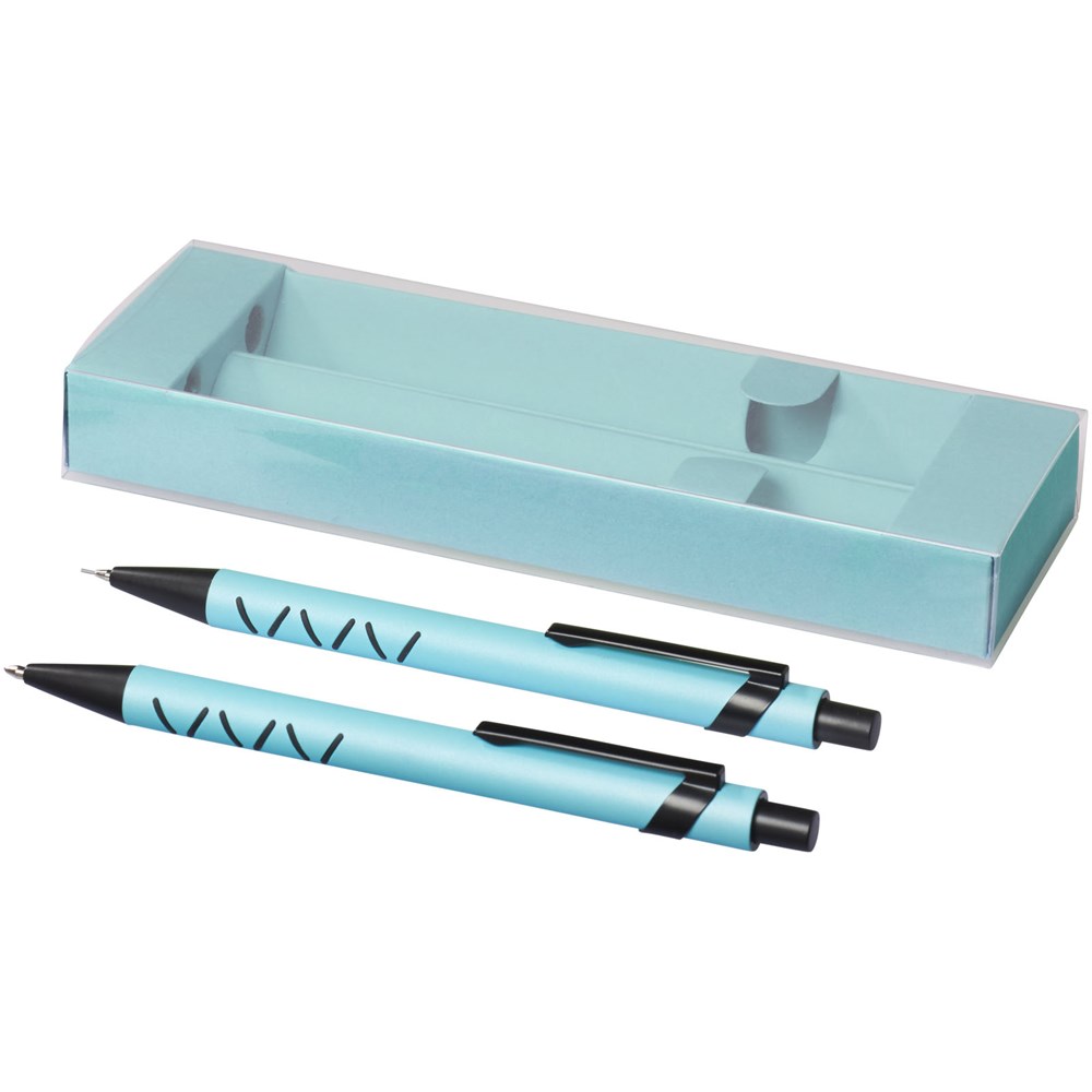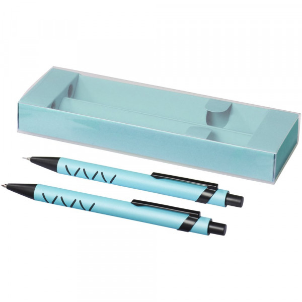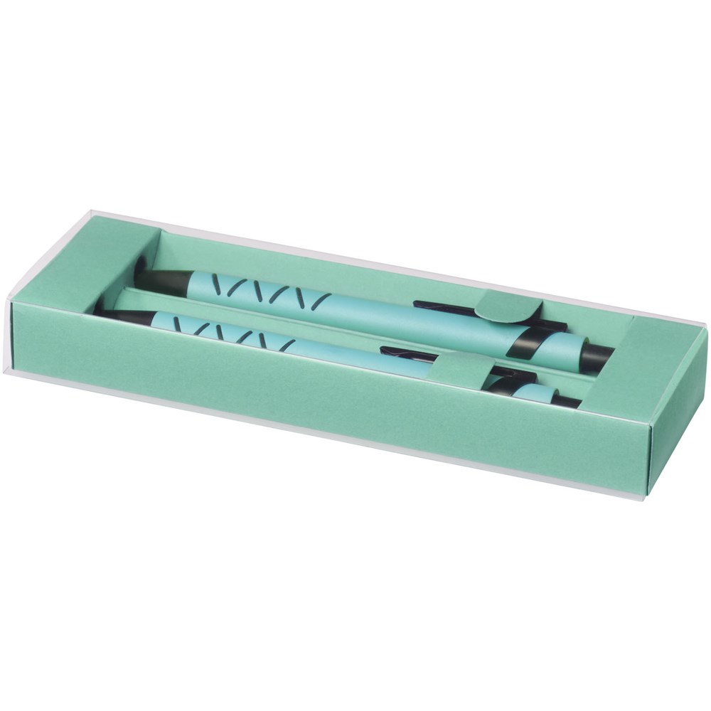 Kugelschreiber und mechanischer Bleistift mit Klickmechanismus in einer passenden Papier Geschenkbox.