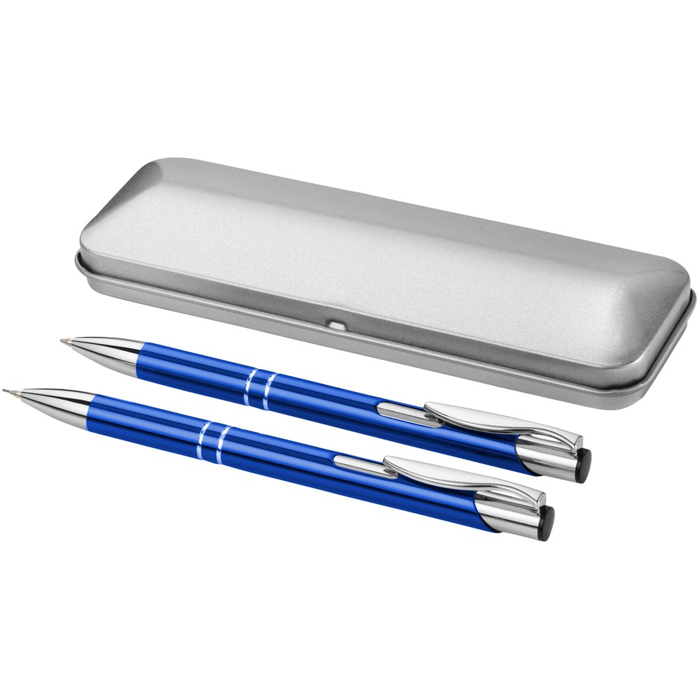 Kugelschreiber und Druckbleistift in Geschenketui aus Blech mit EVA-Einlage.
