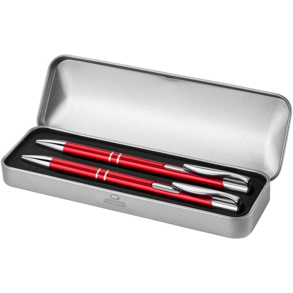 Kugelschreiber und Druckbleistift in Geschenketui aus Blech mit EVA-Einlage.