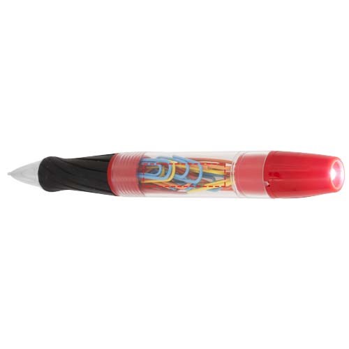 Kugelschreiber mit Drehmechanismus in der Spitze, abschraubbarer Schaft mit Büroklammern und LED... mehr