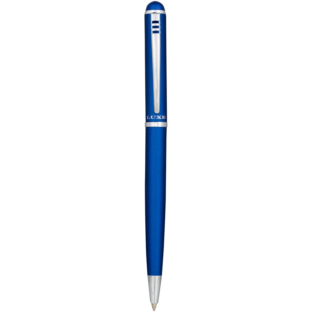 Exklusiv gestaltetes Schreibset aus Kugelschreiber zum Drehen und Tintenroller mit Kappe. Erhältlich in glänzendem Schwarz, mattem Silber und mattem Blau. Verpackt in einer „LUXE“-Geschenkschachtel (17 x 5,5 x 3 cm).