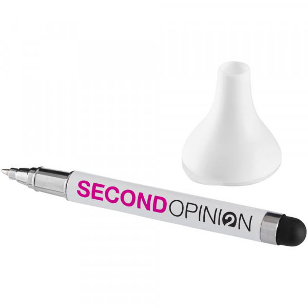 Multifunktion Stylus Kugelschreiber mit Bildschirmreiniger und abnehmbarer Kappe, die auch als ein Stifthalter dient.