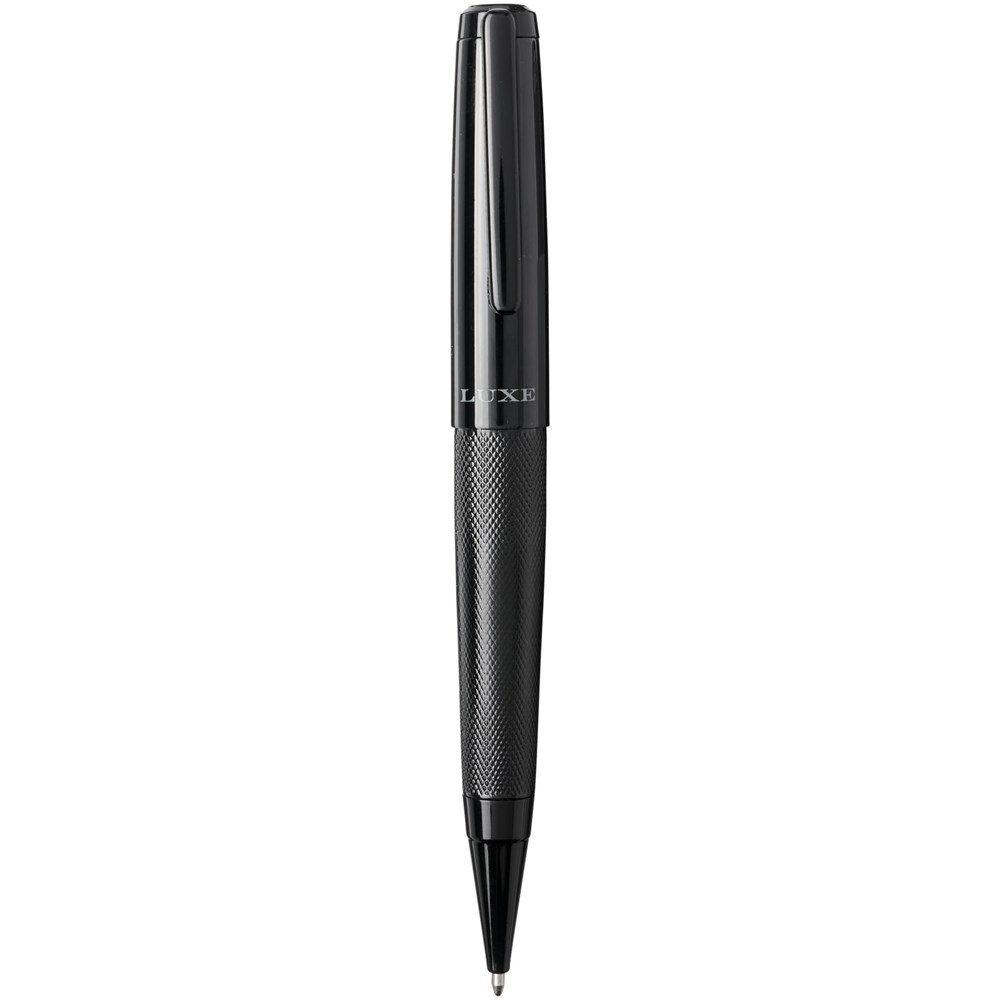 Kugelschreiber- und Tintenroller-Geschenkset mit einem schwarzen oberen und unteren Schaft in glänzender Ausführung, geliefert in einer Luxe-Geschenkbox. Kugelschreiber: 14 x 1,45 cm, Gewicht: 40 g, Schreiblänge: 800 m. Durchmesser des Tintenrollers: 13,8 x 1,45 cm, Gewicht: 54 g, Schreiblänge: 400 m.