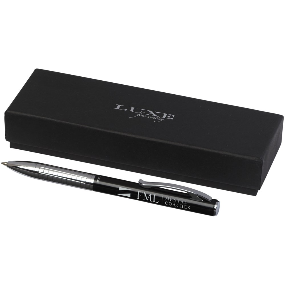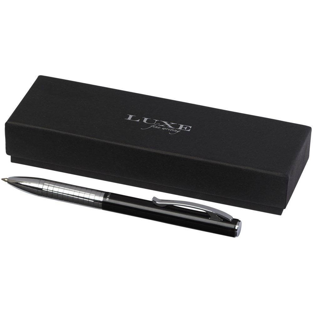 Modischer Kugelschreiber mit Drehmechanismus. Inklusive einer hochwertigen Ersatzmine und verpackt in einer „LUXE“-Geschenkschachtel.