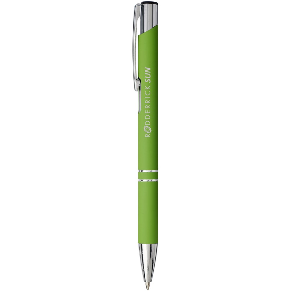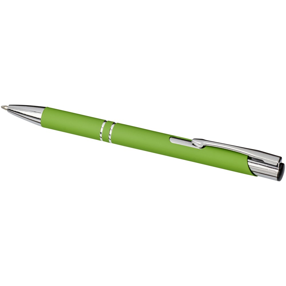Durch die Gummibeschichtung fühlt sich der Stift weich an und und bei der Lasergravur ist die silberne Unterschicht des Stiftes sichtbar. Kugelschreiber mit Klickmechanismus, schwarzer Gummibeschichtung, verchromten Verzierungen und schwarzem ABS-Obermaterial. Das umfangreiche und beliebte Moneta-Sortiment ist in vielen verschiedenen Stilen und Ausführungen erhältlich.
